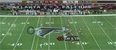 Kao što vidimo odbrana je izvela Nickel Personnel (5 DB-a) na teren jer očigledna pretnja je pass. DeSean Jackson je jedini WR Phile koji je podložan press coverageu jer je splitovan široko na desnoj strani. Drugi CB igra man nad Curtisom, NB (nickelback) man nad Brownom, dok je SS zadužen za TE Smitha. Blizina Bunch Formacije OL predstavlja problem jer igrači secondarija ne mogu da adekvatno pressuju WR iz nekoliko razloga: