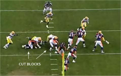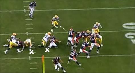 Na kraju treba napomenuti da je blocking shema odlicna jer ostavlja napadu 5 podesnih hvatača u akciji, a ujedno 7 igrača učestvuju kao blockeri u istoj (TE, RB i 5 OL). To omogučava LT i LG da imaju double block an 1-tech DT-u, a C i RG na 1-tech DT-u. Ovim se fantastično neutralizuje pass rush odbrane pogotovu što najbolji pass rusher ekipe ima blokove na 2 nivoa i time se usporava njegova penetracija u backfield.