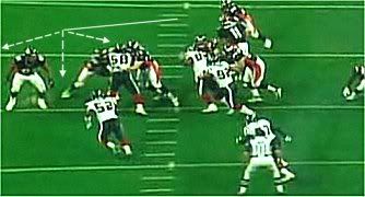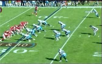 Pre nego što pređemo na sam scheme Reida i kako koristi ovaj loš matchup po odbranu, samo da notiramo i Westbrooka koji ima takođe svog čuvara u jednom od LB-a koji je njegov ghost. Ovo je jako važno napomenuti jer zanemariti Westbrooka kao hvatača je smrtni greh za odbranu. S' druge strane to je još jedna prednost napada jer sada imaju još jednog igrača manje koji bi potencijalno mogao da igra zone coverage.